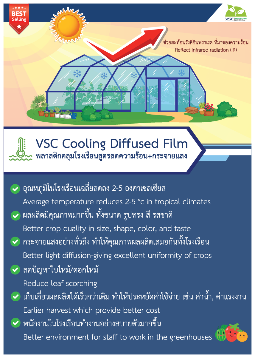 พลาสติกคลุมโรงเรือนลดความร้อนและกระจายแสง (VSC Cooling Diffused Film)